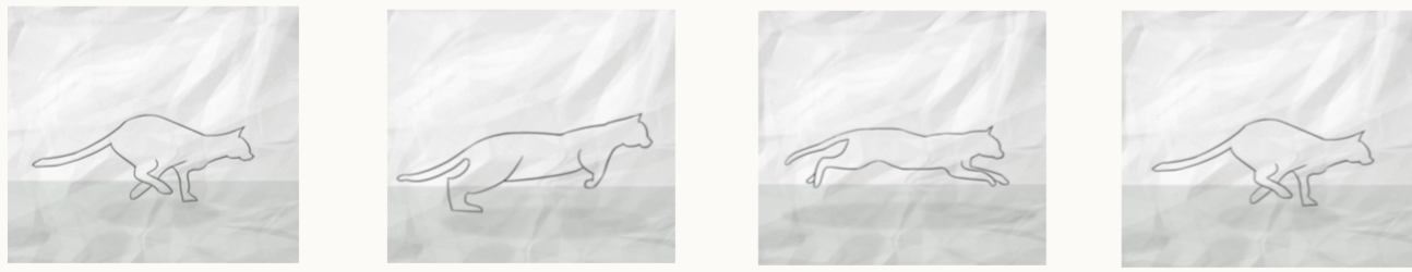Ähnlich verfahren Sie mit Tierbewegungen. Bei springenden Tieren wechseln sich die belasteten Drehpunkte ab. So sind bei einer Katze erst die Hinterbeine belastet, von ihnen ausgehend streckt sich der komplette Körper nach vorne, die Vorderpfoten fangen den Sprung auf, werden belastet und der restliche Körper wird in einer Bogenbewegung nachgezogen, kurz hinter den Vorderpfoten setzen die Hinterbeine auf.
