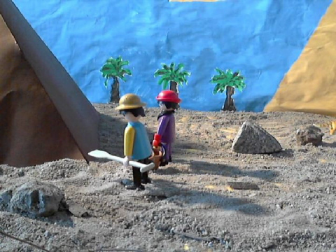 Eine ganz eigene Ästhetik bekommt man natürlich, wenn die Figuren selber gestaltet werden. Für einen einfachen Einstieg bietet sich dazu Knetmasse an. Achtung! Es gibt hier unterschiedliche Produkte. Man sollte den Umgang damit ausprobieren. Knetmasse mit einem hohen Fettanteil, die bei Wärme sehr weich wird oder verschmiert, eignet sich weniger (geeignet ist z.B. Waible Knet oder Lupus). Knetmasse hinterlässt auf saugenden Untergründen unschöne Flecken, auch das sollte beachtet werden. Idealerweise passt man die Gestaltung der Figuren dem Material an. Knetfiguren sollten beispielsweise kompakt sein, sonst sind sie instabil und brauchen evtl. sogar ein Innengerüst aus Draht. Auch aus Pappe (z.B. Papprollen), Korken, Schaumstoff, Draht, Alufolie, Servietten etc. lassen sich 3D-Figuren gestalten.